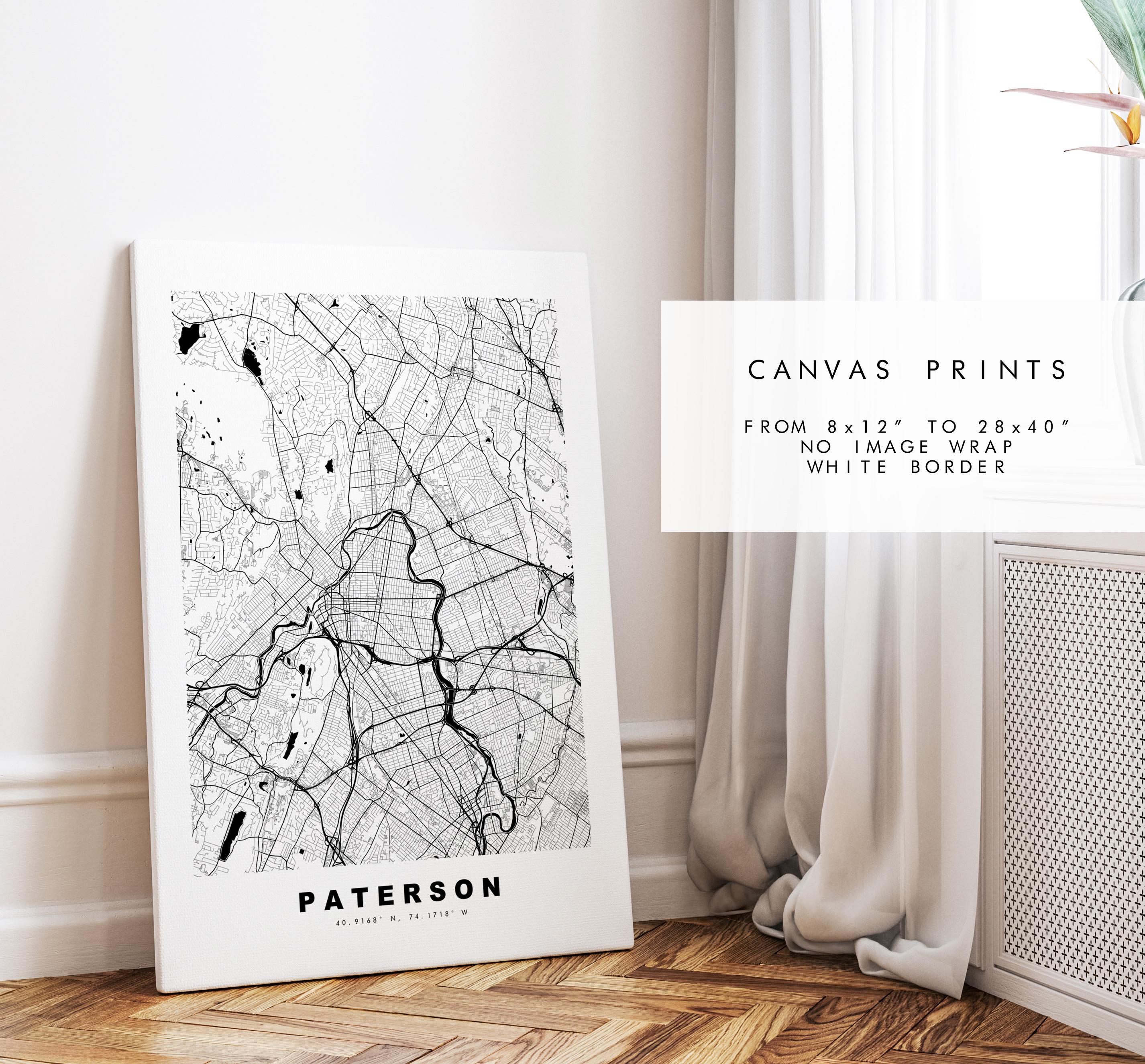 Paterson map in a minimalist black/white style or choose from a range of colours. These maps look great as a feature piece or as part of a set over a statement piece of furniture.